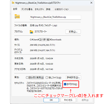 ダウンロードが完了しましたら『Nightmare_x_BlackCat_TrialEdition.zip』を右クリックして